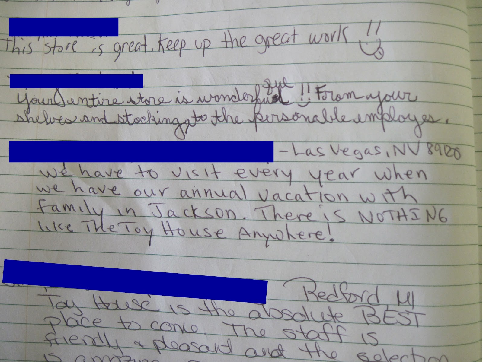 Not only does a Guest Book like this allow your customers to sing your praises at the moment they are feeling overjoyed by their visit, it gives you some incredible feedback. There are clues hidden in the messages they write. (If no one praises you at all, that’s a really big clue that they aren’t having the kind of fun they should be having.)
