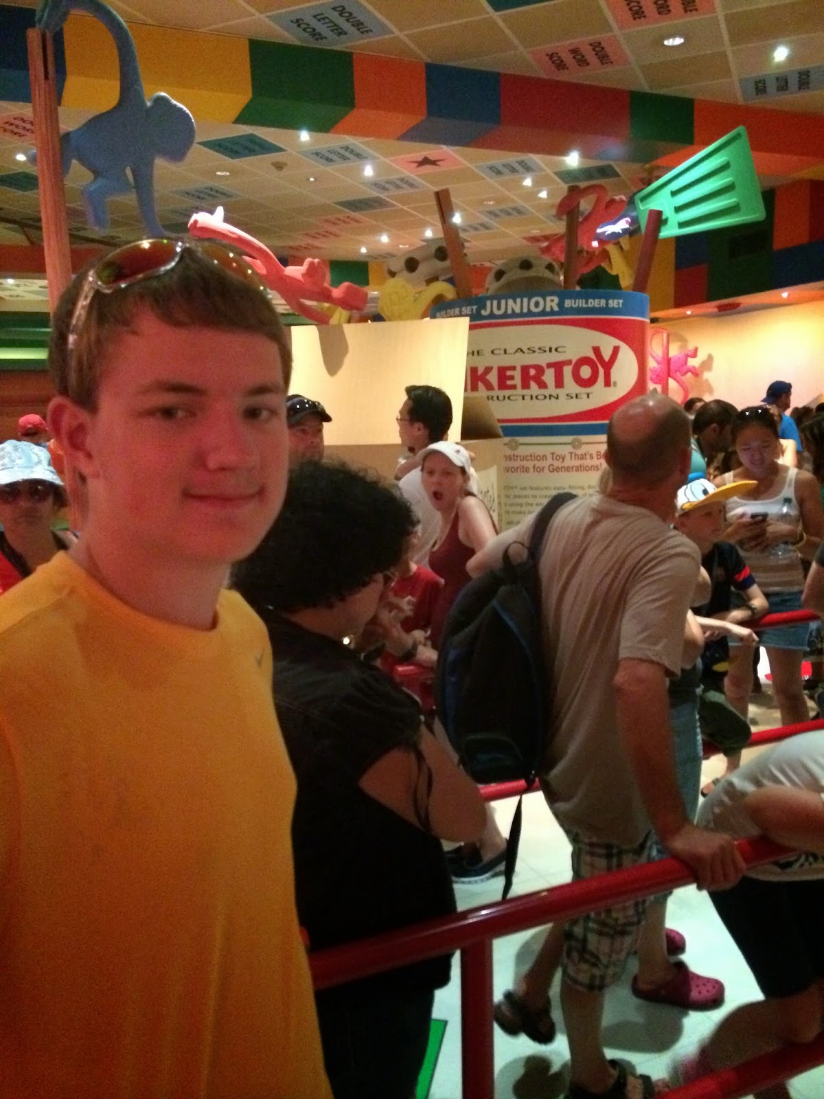 We waited in line for Toy Story Midway Mania and were transported to a room with larger-than-life toys and a story-telling Mr Potato Head while we waited.